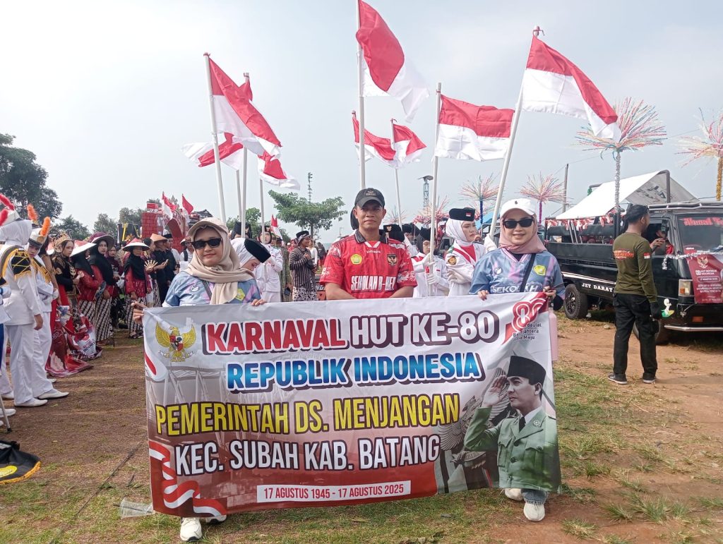 Subah, Kencana News – Dalam rangka memperingati Hari Ulang Tahun ke-80 Kemerdekaan Republik Indonesia, Desa Menjangan, Kecamatan Subah, Kabupaten Batang, menggelar karnaval meriah yang diikuti oleh berbagai elemen masyarakat pada Sabtu (23/8). Salah satu yang menjadi sorotan dalam kegiatan tersebut adalah penampilan grup drumband Melody Kencana dari SMK Bhakti Kencana Subah.